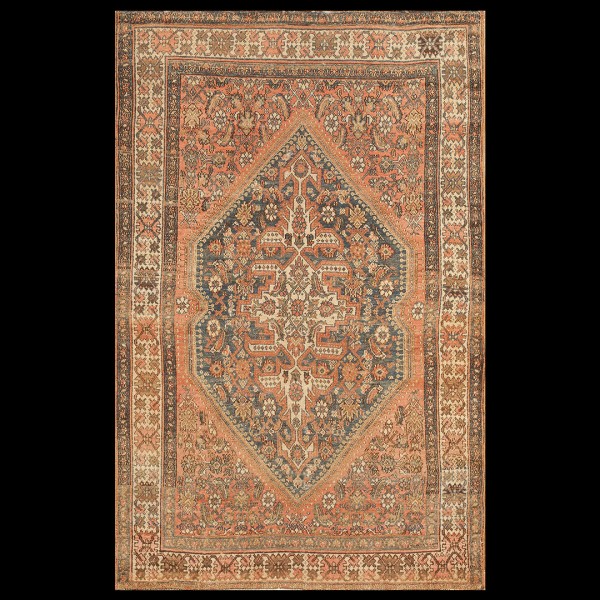 DescriptionHamadanThe old city of Echatana in southern Azerhaijan province, Persia. Rugs called Hamadan are not made in the city, but only marketed there. They are woven in 100s of Kurdish villages and tribal encampments in the surrounding area, in a welter of designs and qualities. Pile is all wool on a wool or cotton foundation, knots Turkish with semi-geometric to semi-floral designs, in sizes tending to scatters and runners. The best old pieces have camel border and fields (see Hamadan-Camel). Production of these inexpensive rugs continues unabated, and many 1000s of them are woven annually. | |