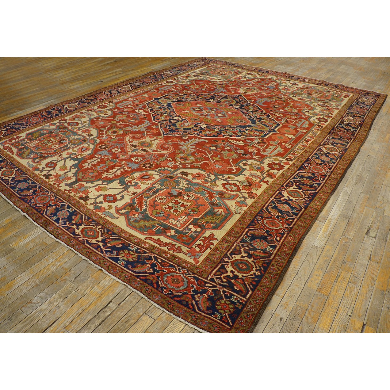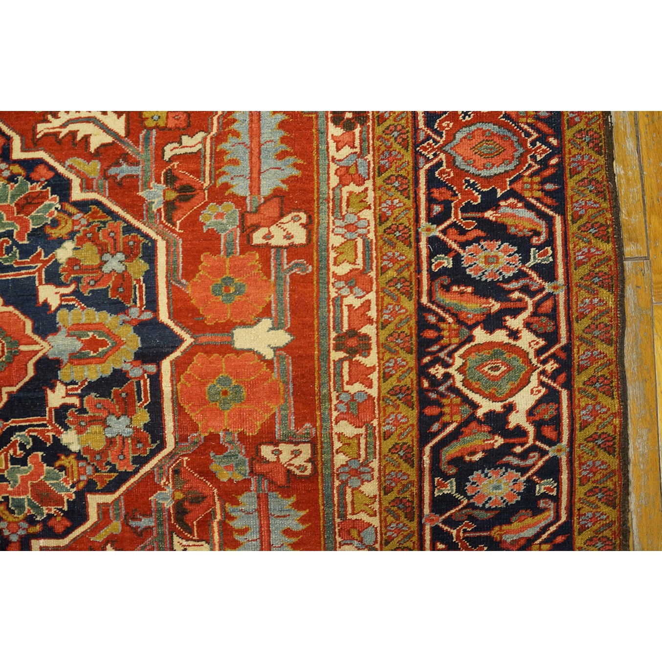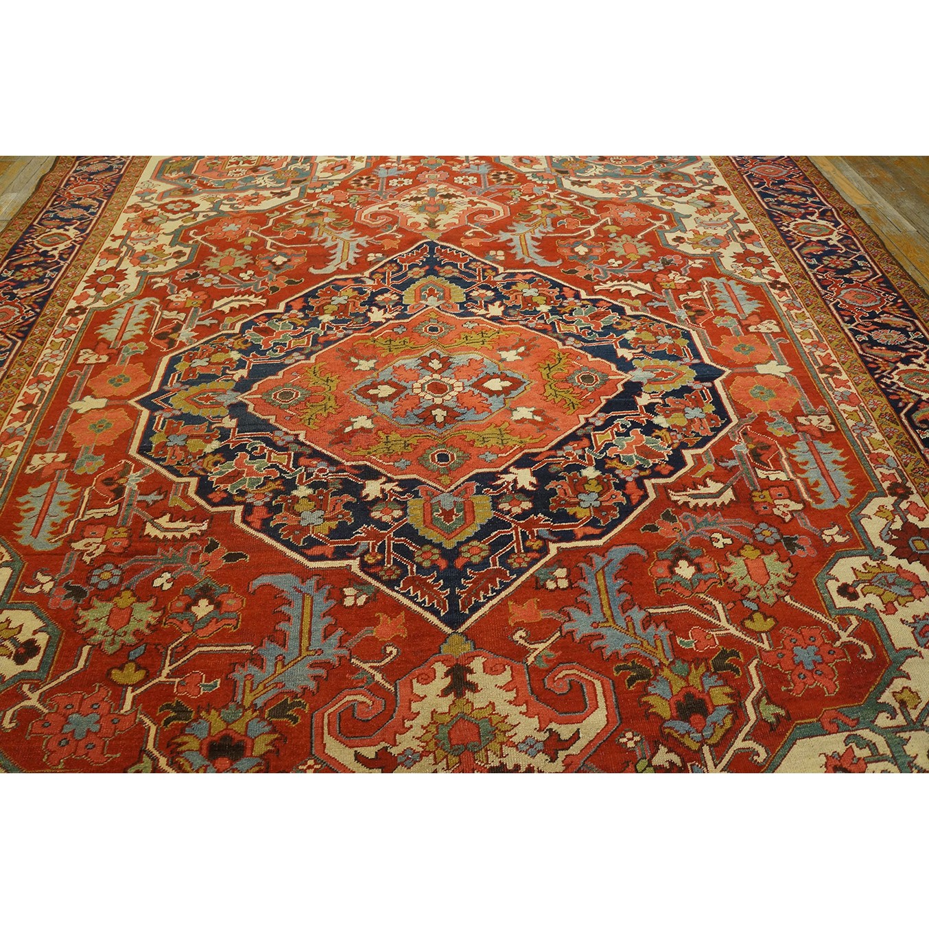 DescriptionHerizThe Heriz area in northern Azerbaijan Province (Iran) makes semi-geometric, strongly colored carpets in a variety of sizes from 2 x 3 up to 15 x 26, usually in medallion design, but formerly in a wide range of overall or centralized layouts. The area has been active for at least two centuries, with production expanding greatly in the late 19th century. Weave is medium to quite coarse but the dyes are excellent and vibrant. Silk rugs were made there in the 19th century, but production ceased by 1910. The Heriz carpet has been the most consistently popular and affordable oriental available for western consumption. | |