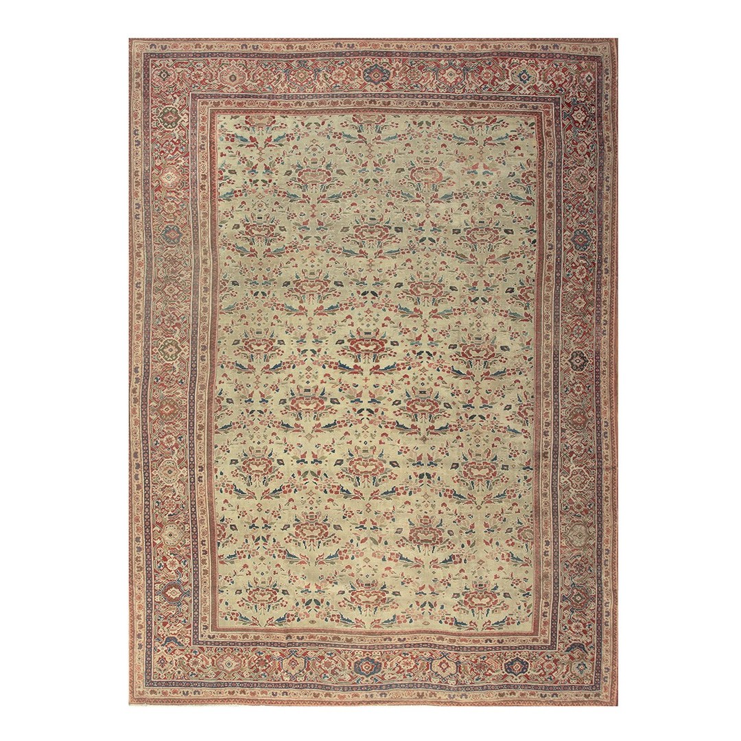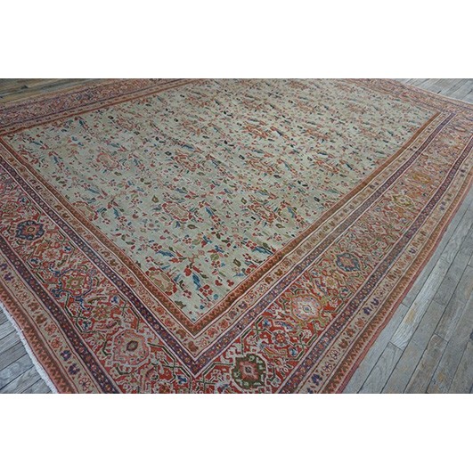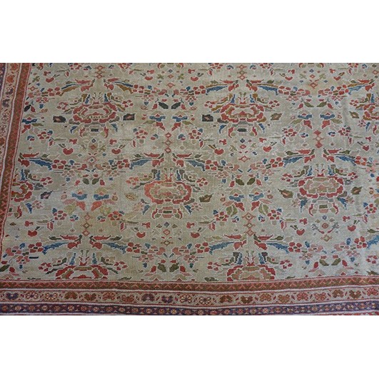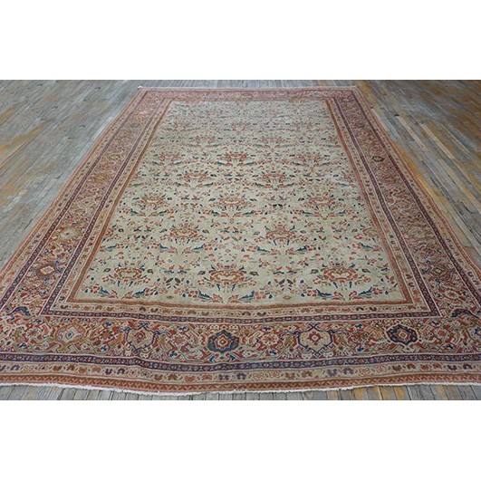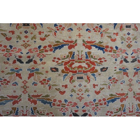 DescriptionMahalPrecisely, this is the intermediate grade of carpet between Sarouks and Mushkabads from the Ferahan plain area. Arak Province, western Persia. Woven in large quantities in room sizes, the patterns tend to be overall repeats in traditional and innovative styles. Those pieces with slightly softer colors and bigger, bolder patterns are often called Ziegler Mahals. For the late 19th century onwards, production was very substantial, thousands of carpets per year, and prices for most pieces are moderate. The usual jewel tones predominate unless the piece has been exposed to light and washing, or to an initial chemical treatment. Mahals are popular everywhere and the overall patterns make them excellent for dining rooms. | |