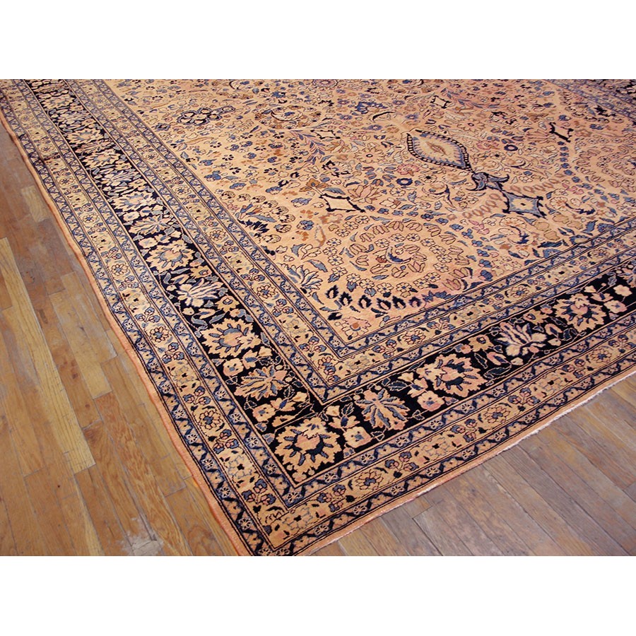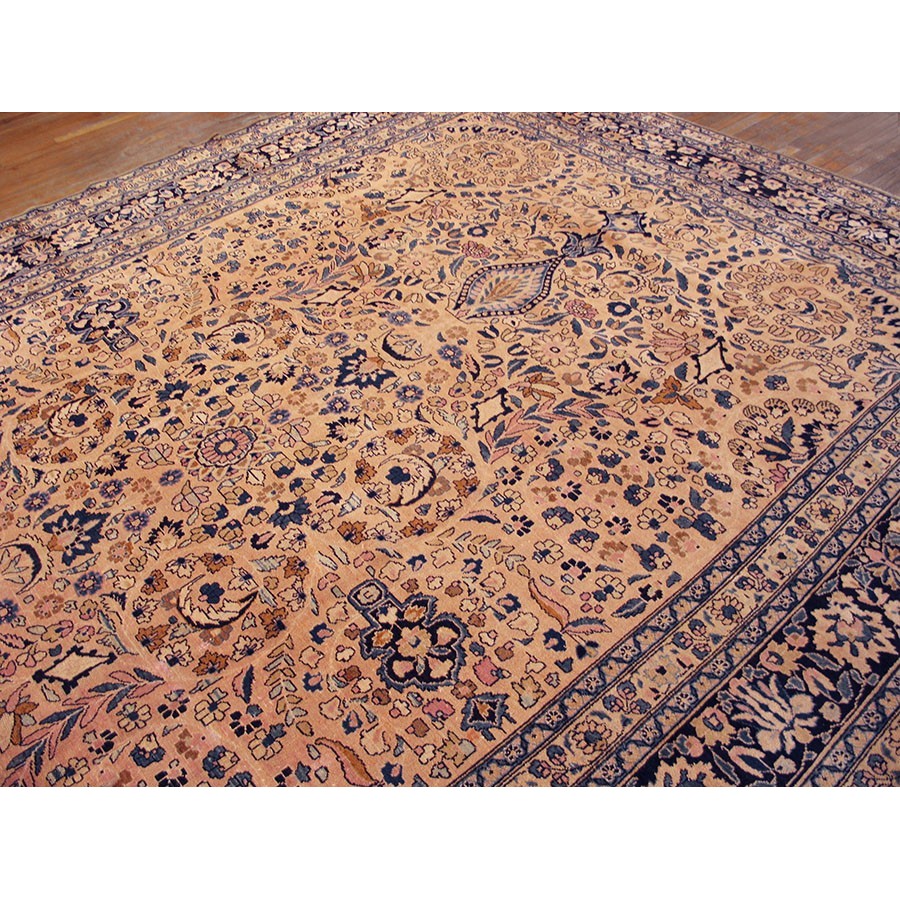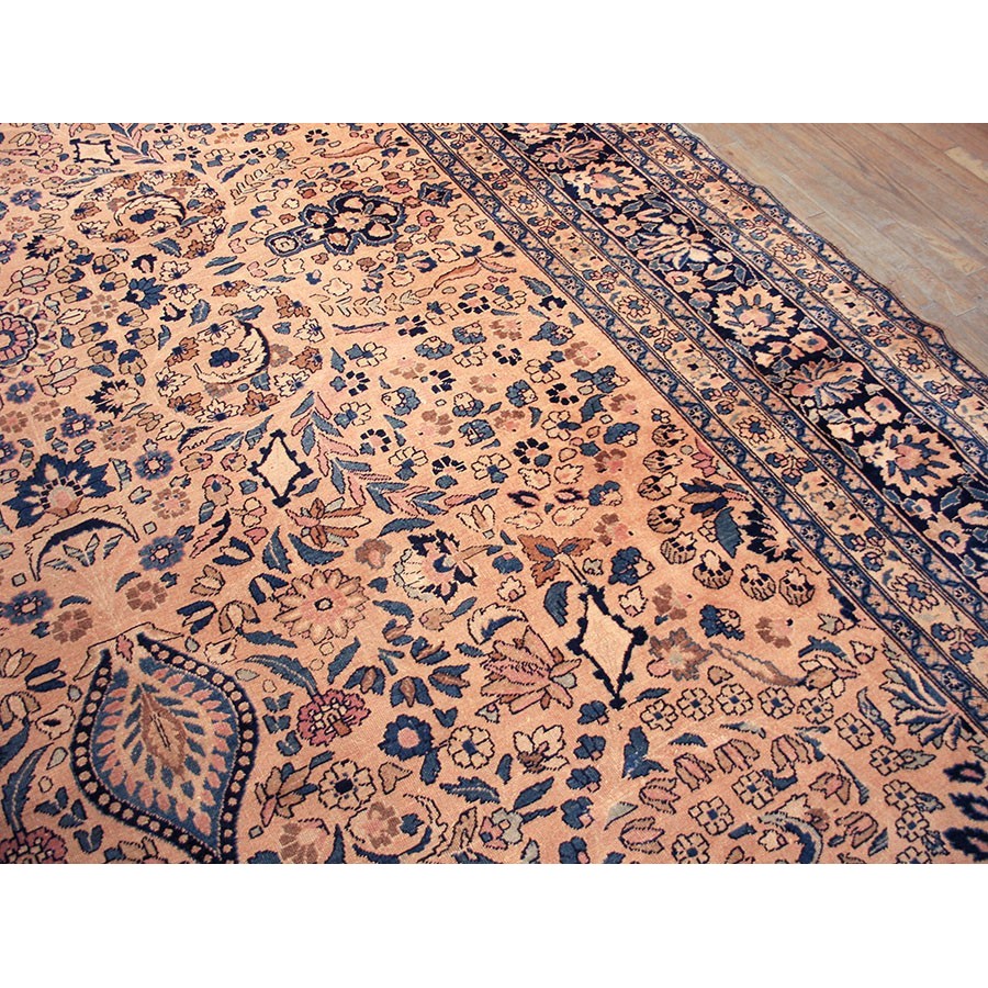 DescriptionMashadThe largest city in Khorassan Province, northeast Iran. The carpet industry there is a late 19th century creation of relocated Tabriz merchants. Both Turkish (Turkhaff) and Persian-(Farsihaft) knotted rugs are produced in large sizes up to 20 x 30, in rich colors including a mulberry. Red designs are strictly curvilinear and often large animals and birds appear. Open fields with medallion and corner ornamentation are common. The texture is thick and heavy. The use of jufti knots allows rapid production. In the 20th century, several renowned workshops (Emogli, | |