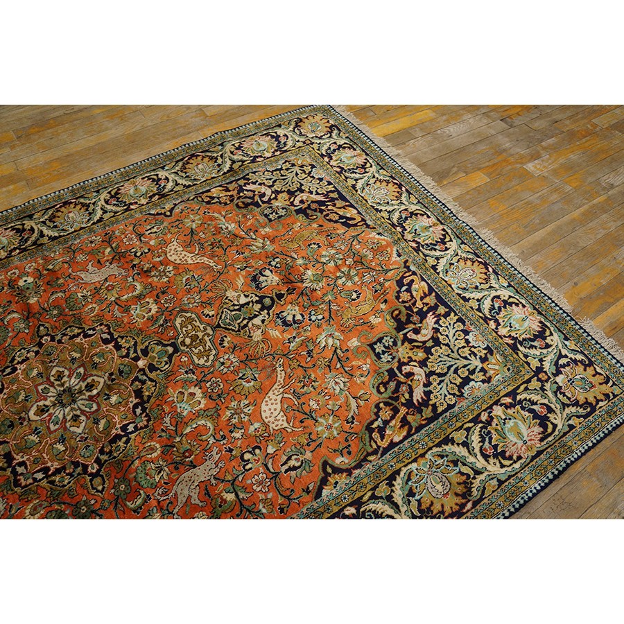 DescriptionQum - SilkThe ancient city of Qum in central Iran is famous for its religious shrines and for the silk rugs which began to be produced just before WWII. Sizes tend to be scatters and designs include a paneled garden arrangement, medallions and even pictorial representations. The weave is fine to very fine and the tonality may be slightly subdued to very bright and striking. The re-imposition of the trade embargo means that new Qums will not arrive from Iran and prices of available pieces may rise accordingly. | |