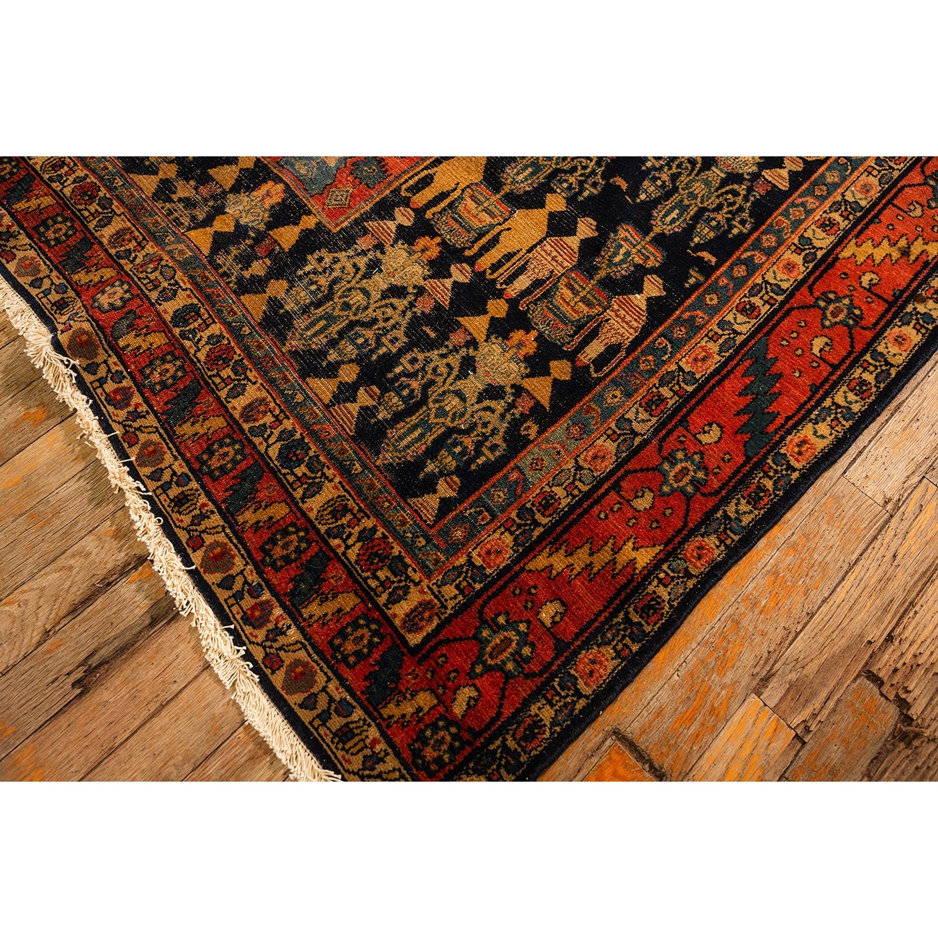 DescriptionSennehSanandaj or Senneh is the capital of Kurdistan province. Rugs made there and in the surrounding villages have a peculiar back with a rough, sandpaper texture. The front pile is very dry and can be almost abrasive, even in very fine pieces. The foundation is usually cotton, but some very fine pieces were woven on silk warps. Patterns are either layered medallions or overall, and the Herati design is very popular. The execution is precise and detailed. Present production is vestigial, but the best 19th century pieces, almost all 4 x 6 are jewel-like in quality. | |