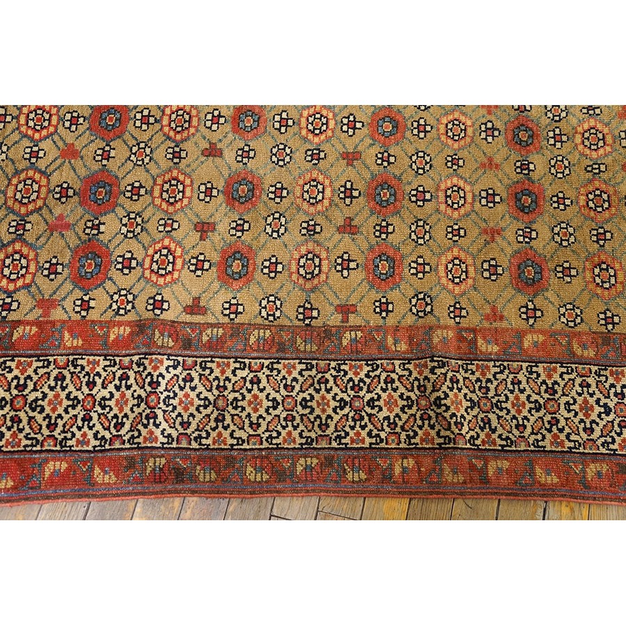 DescriptionSerabThis town on the edge of the Heriz area in Northwest Iran now almost exclusively weave runners in a restricted design range with a major use of camel tones in both field and border. This style and formality can be traced continuously back almost 200 years. Thus 19th century pieces can easily be chronologically located. Older pieces are all wool, but more modern rugs are on a cotton foundation. The pile is of high quality wool, compact. Turkish knotted and long wearing. Serab runners are among the worst recognizable and popular of Persian rugs. | |