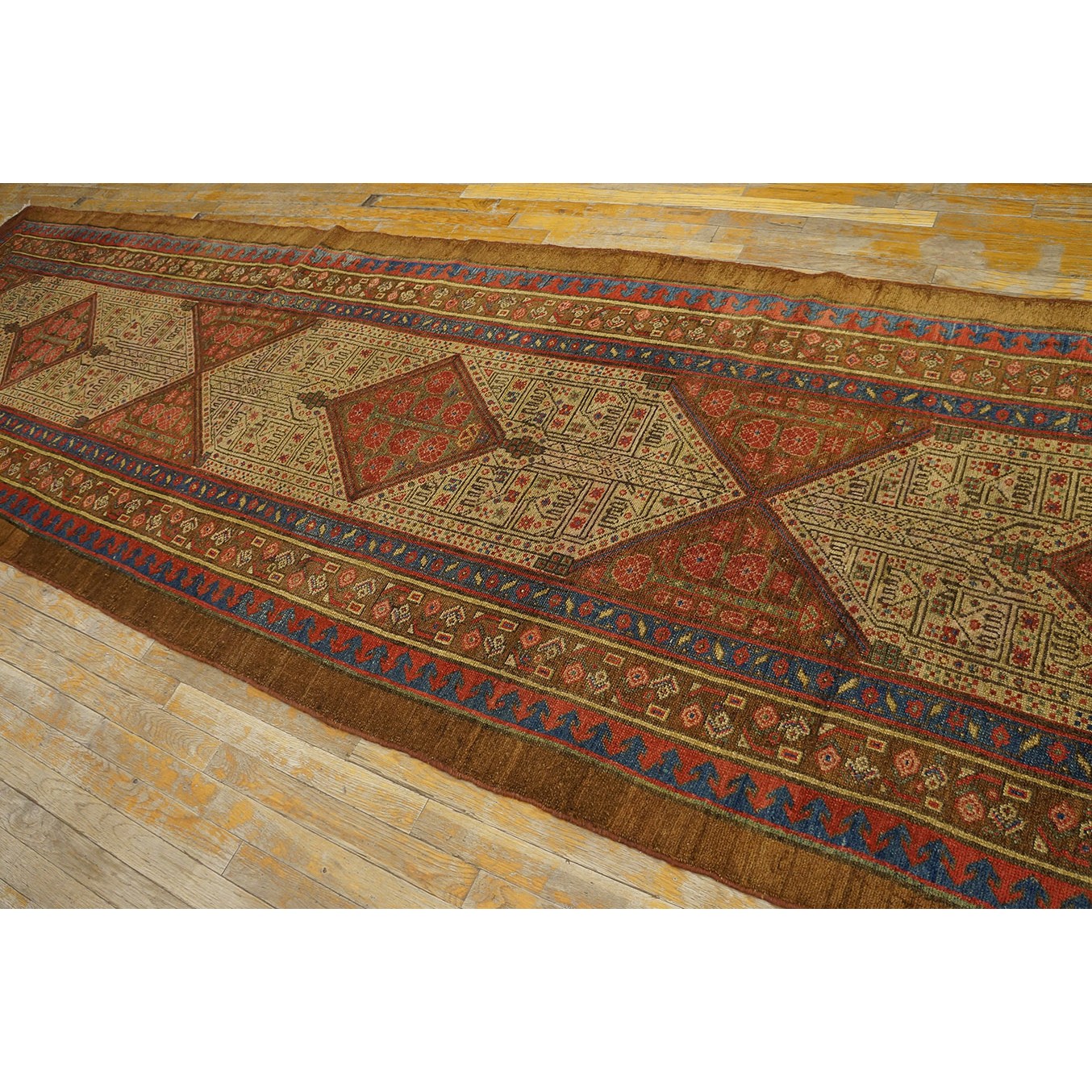 DescriptionSerabThis town on the edge of the Heriz area in Northwest Iran now almost exclusively weave runners in a restricted design range with a major use of camel tones in both field and border. This style and formality can be traced continuously back almost 200 years. Thus 19th century pieces can easily be chronologically located. Older pieces are all wool, but more modern rugs are on a cotton foundation. The pile is of high quality wool, compact. Turkish knotted and long wearing. Serab runners are among the worst recognizable and popular of Persian rugs. | |