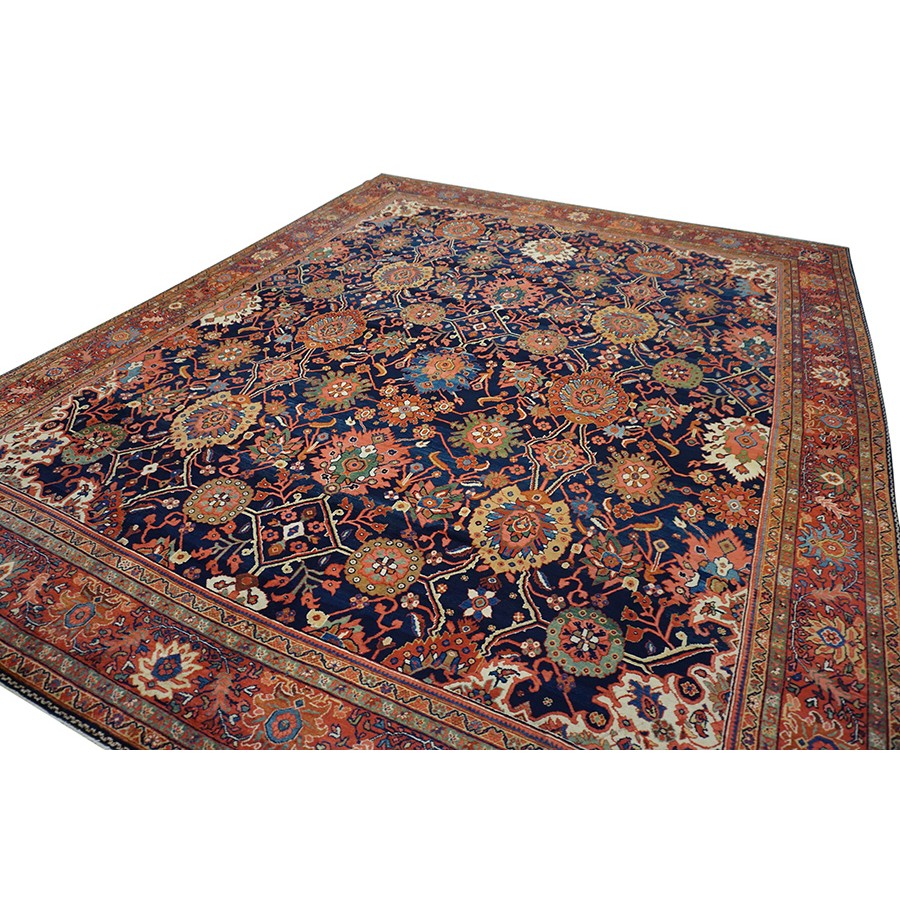 DescriptionSultanabadArak province in western Iran encompasses the town of Sultanabad and various satellite villages, all of which weave for export:the sarouk, Mahal and MushKabad. The latter two grades comprise the sultanabad production. Virtually all are large carpets, up to 16 x 25, with overall, or medallions on decorated or open fields, in soft to bright colors on a cotton foundation, the pile is lowish. The design corpus includes the ever popular Herati, the Harshang palmette motif, rosettes and arabesques, small repeated medallions, etc. The weave varies from coarse to medium. Today, the soft colored pieces with bold patterns are particularly favored. Prices range widely, low for commercial pieces 50 years old, astronomical for light colored Zieglers (see below). | |