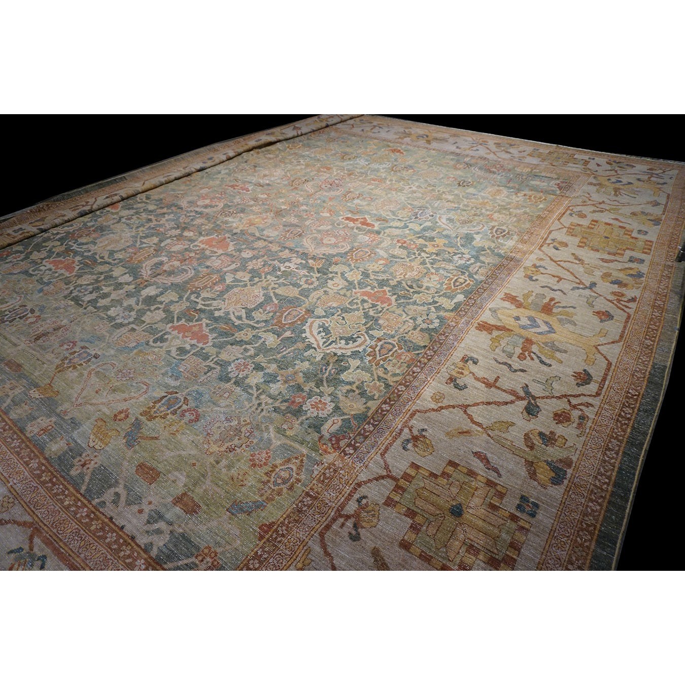 DescriptionSultanabadArak province in western Iran encompasses the town of Sultanabad and various satellite villages, all of which weave for export:the sarouk, Mahal and MushKabad. The latter two grades comprise the sultanabad production. Virtually all are large carpets, up to 16 x 25, with overall, or medallions on decorated or open fields, in soft to bright colors on a cotton foundation, the pile is lowish. The design corpus includes the ever popular Herati, the Harshang palmette motif, rosettes and arabesques, small repeated medallions, etc. The weave varies from coarse to medium. Today, the soft colored pieces with bold patterns are particularly favored. Prices range widely, low for commercial pieces 50 years old, astronomical for light colored Zieglers (see below). | |