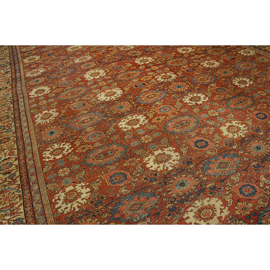 DescriptionSultanabadArak province in western Iran encompasses the town of Sultanabad and various satellite villages, all of which weave for export:the sarouk, Mahal and MushKabad. The latter two grades comprise the sultanabad production. Virtually all are large carpets, up to 16 x 25, with overall, or medallions on decorated or open fields, in soft to bright colors on a cotton foundation, the pile is lowish. The design corpus includes the ever popular Herati, the Harshang palmette motif, rosettes and arabesques, small repeated medallions, etc. The weave varies from coarse to medium. Today, the soft colored pieces with bold patterns are particularly favored. Prices range widely, low for commercial pieces 50 years old, astronomical for light colored Zieglers (see below). | |