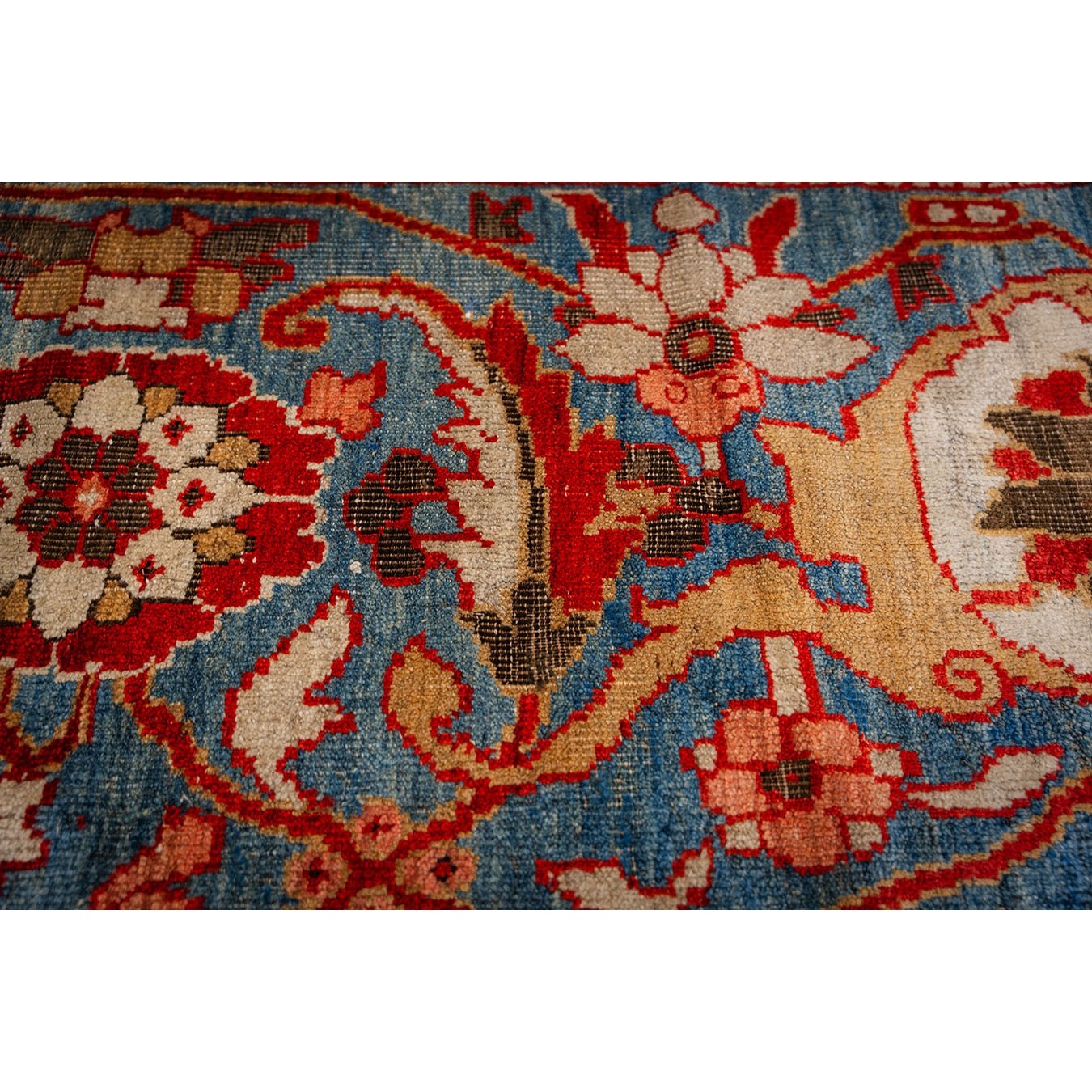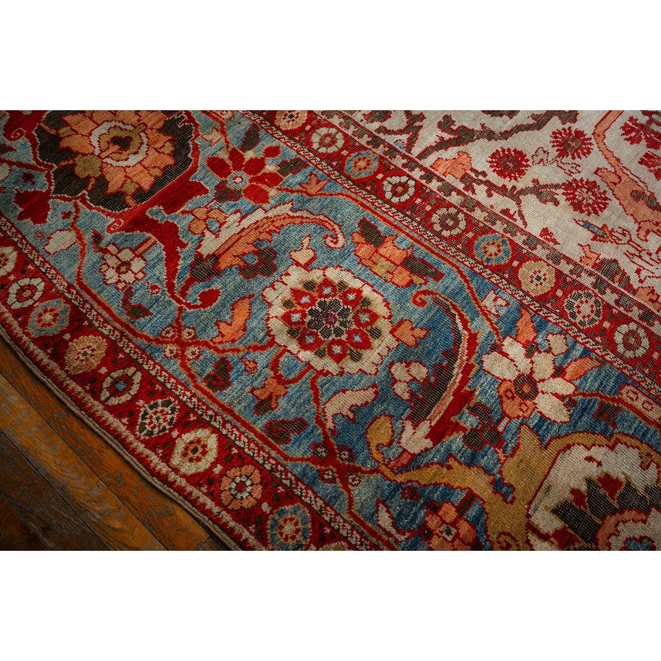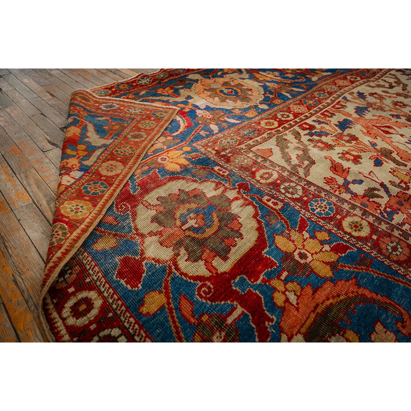 DescriptionSultanabadArak province in western Iran encompasses the town of Sultanabad and various satellite villages, all of which weave for export:the sarouk, Mahal and MushKabad. The latter two grades comprise the sultanabad production. Virtually all are large carpets, up to 16 x 25, with overall, or medallions on decorated or open fields, in soft to bright colors on a cotton foundation, the pile is lowish. The design corpus includes the ever popular Herati, the Harshang palmette motif, rosettes and arabesques, small repeated medallions, etc. The weave varies from coarse to medium. Today, the soft colored pieces with bold patterns are particularly favored. Prices range widely, low for commercial pieces 50 years old, astronomical for light colored Zieglers (see below). | |