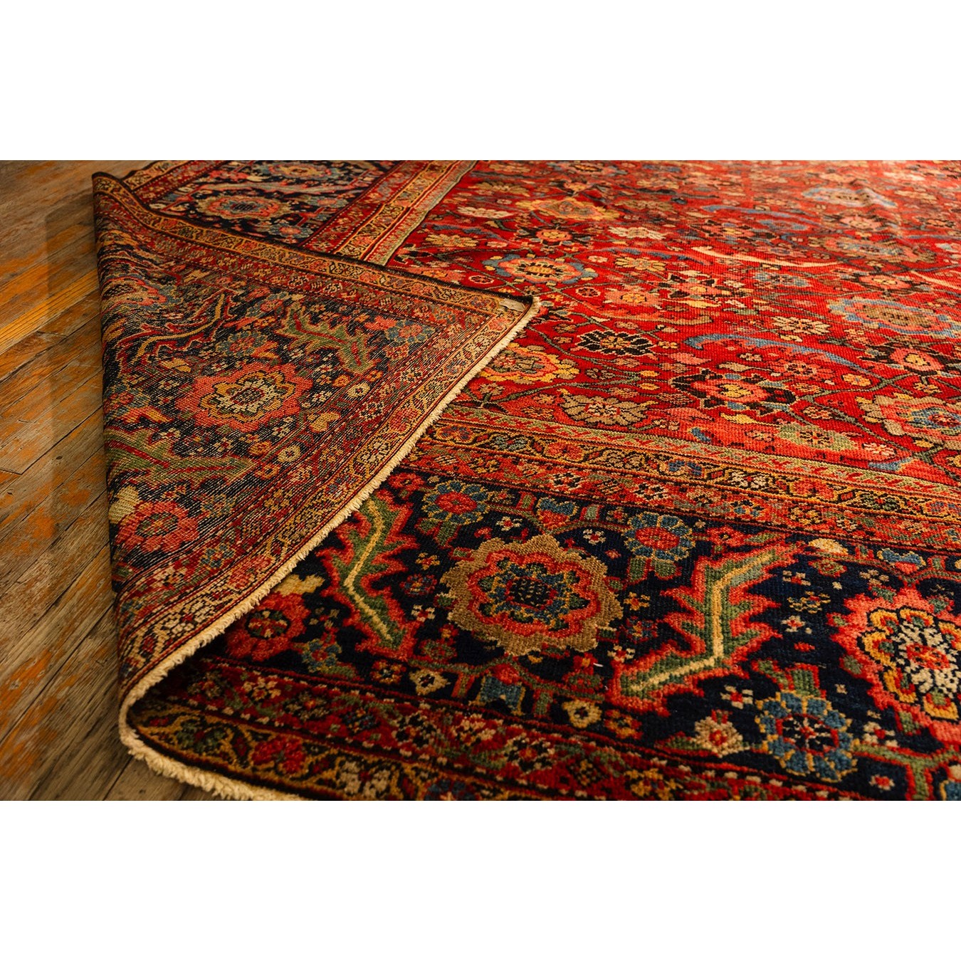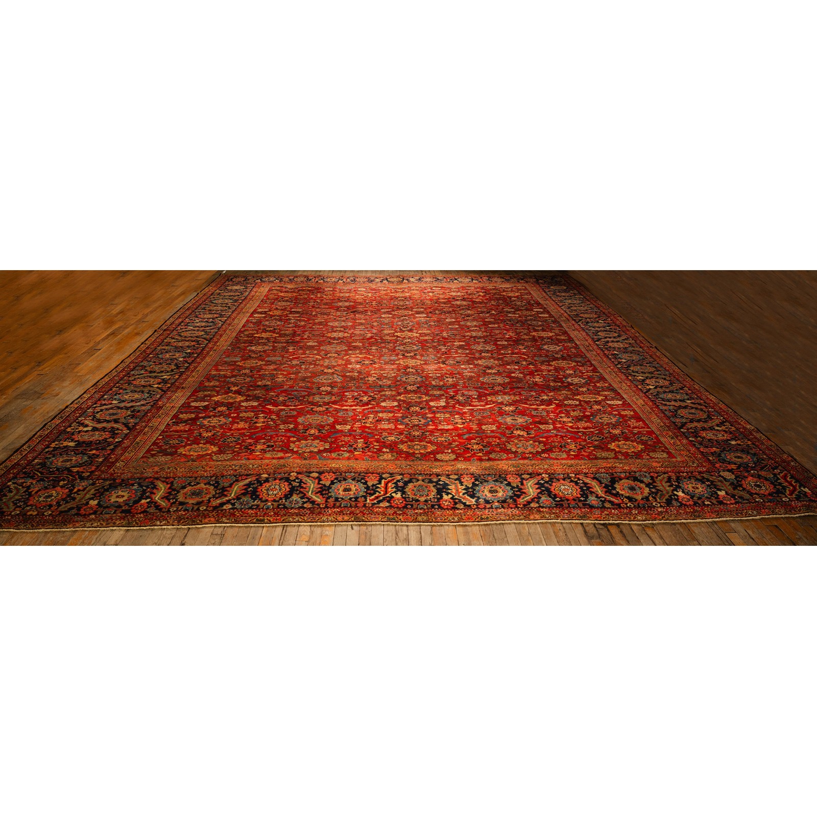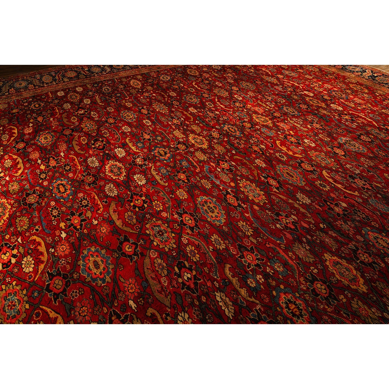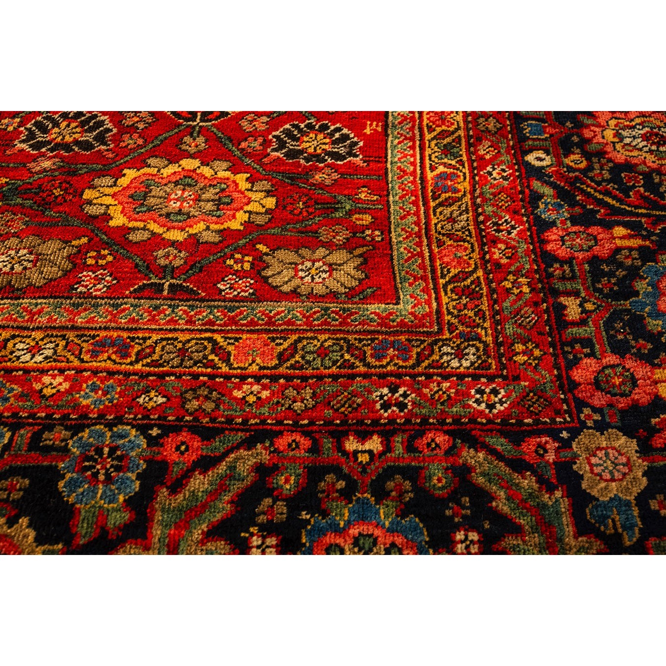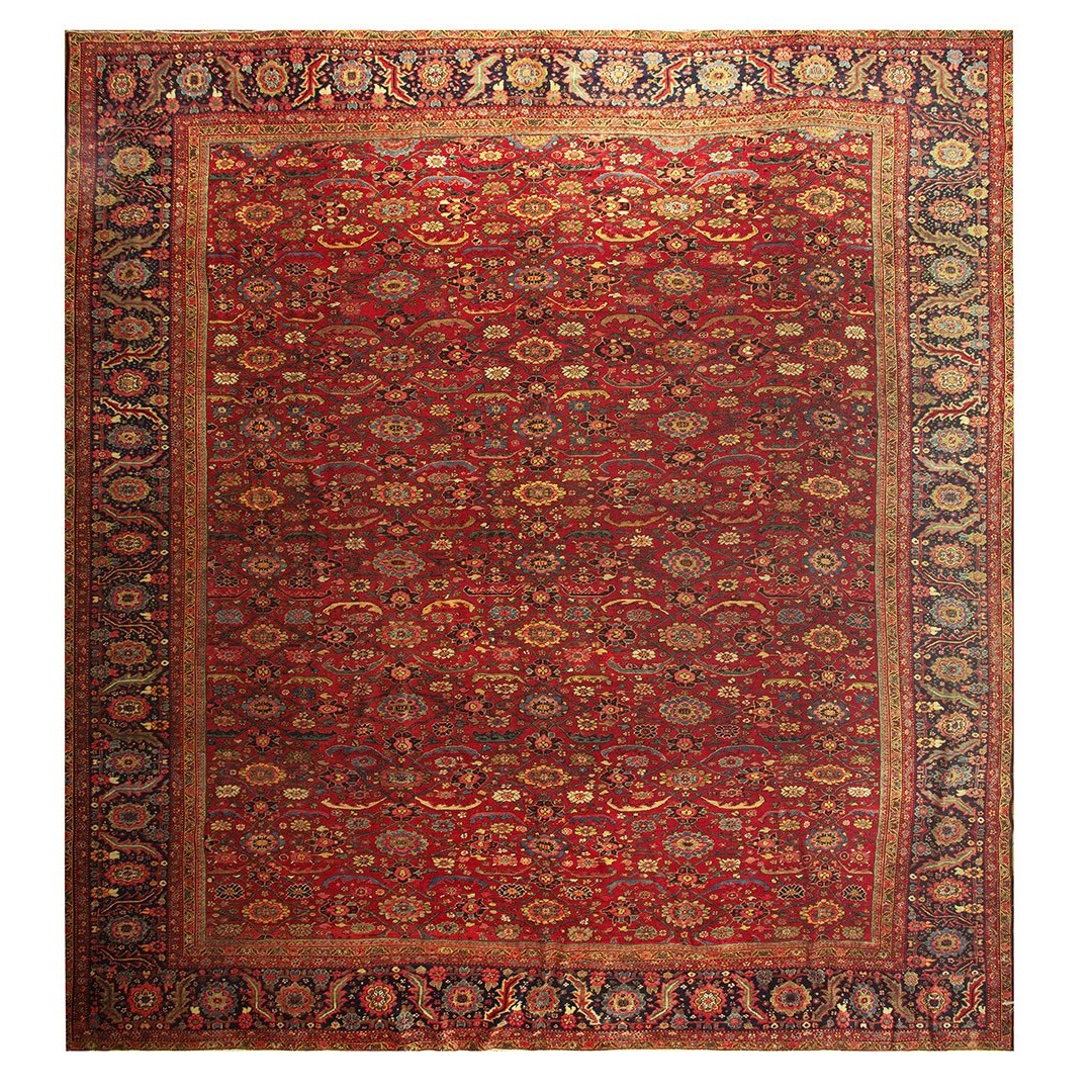 DescriptionSultanabadArak province in western Iran encompasses the town of Sultanabad and various satellite villages, all of which weave for export:the sarouk, Mahal and MushKabad. The latter two grades comprise the sultanabad production. Virtually all are large carpets, up to 16 x 25, with overall, or medallions on decorated or open fields, in soft to bright colors on a cotton foundation, the pile is lowish. The design corpus includes the ever popular Herati, the Harshang palmette motif, rosettes and arabesques, small repeated medallions, etc. The weave varies from coarse to medium. Today, the soft colored pieces with bold patterns are particularly favored. Prices range widely, low for commercial pieces 50 years old, astronomical for light colored Zieglers (see below). | |