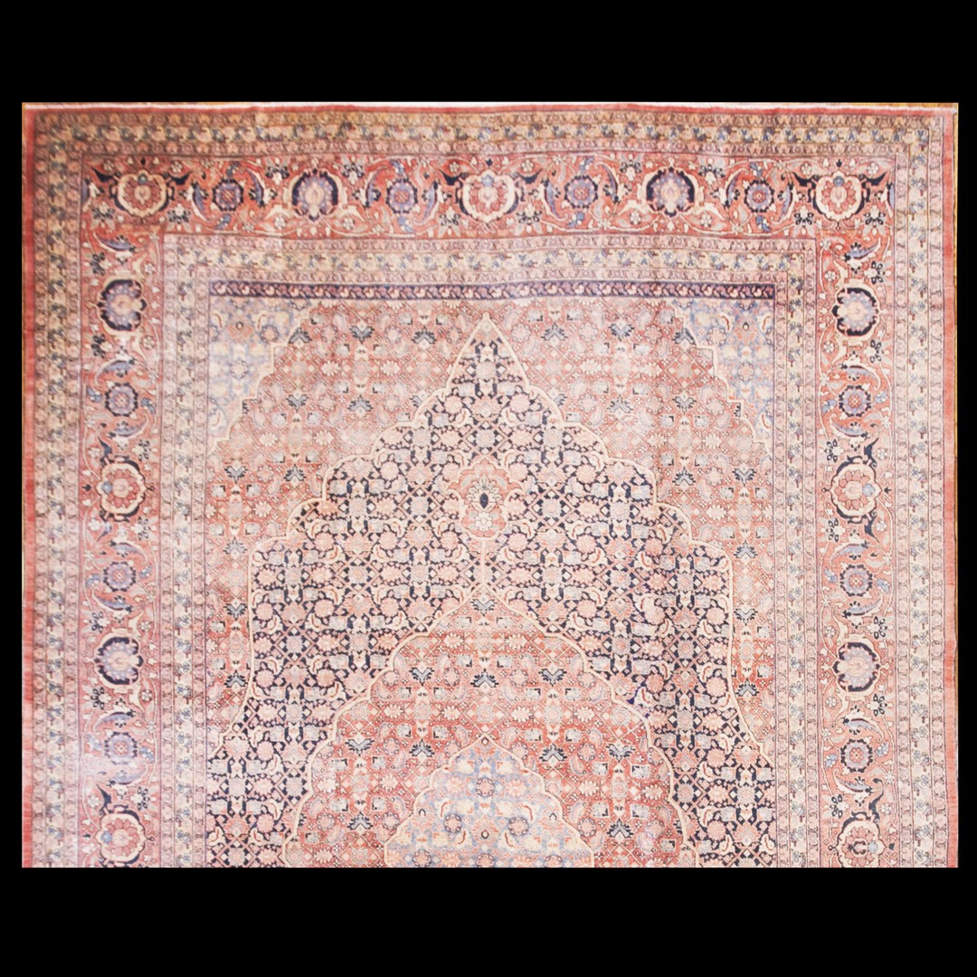 DescriptionTabrizTabriz is the seat of Persian Azerbaijan Province, a large industrial and commercial city with a long history as a past national capital and as an artistic center. The weaving industry was revived there in the 19th century and is carried out in factories where rugs are closely supervised. Quality control is a feature of Tabriz pieces and various grades up to very fine, extremely large carpets may be had. When the colors have mellowed and condition is good, they are extremely valuable and popular with decorators every where. Medallion and overall patterns are woven equally successfully. Silk carpets were popular from this area before 1930 and a few are still made. Sizes range from 2 x 3 to ones 20 x 30. Prices are moderate for the lower grades and upwards. | |