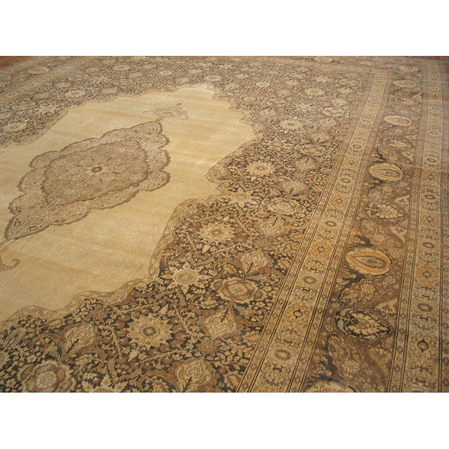 DescriptionTabrizTabriz is the seat of Persian Azerbaijan Province, a large industrial and commercial city with a long history as a past national capital and as an artistic center. The weaving industry was revived there in the 19th century and is carried out in factories where rugs are closely supervised. Quality control is a feature of Tabriz pieces and various grades up to very fine, extremely large carpets may be had. When the colors have mellowed and condition is good, they are extremely valuable and popular with decorators every where. Medallion and overall patterns are woven equally successfully. Silk carpets were popular from this area before 1930 and a few are still made. Sizes range from 2 x 3 to ones 20 x 30. Prices are moderate for the lower grades and upwards. | |