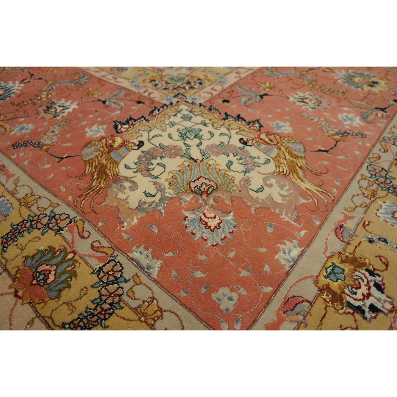 DescriptionTabrizTabriz is the seat of Persian Azerbaijan Province, a large industrial and commercial city with a long history as a past national capital and as an artistic center. The weaving industry was revived there in the 19th century and is carried out in factories where rugs are closely supervised. Quality control is a feature of Tabriz pieces and various grades up to very fine, extremely large carpets may be had. When the colors have mellowed and condition is good, they are extremely valuable and popular with decorators every where. Medallion and overall patterns are woven equally successfully. Silk carpets were popular from this area before 1930 and a few are still made. Sizes range from 2 x 3 to ones 20 x 30. Prices are moderate for the lower grades and upwards. | |
