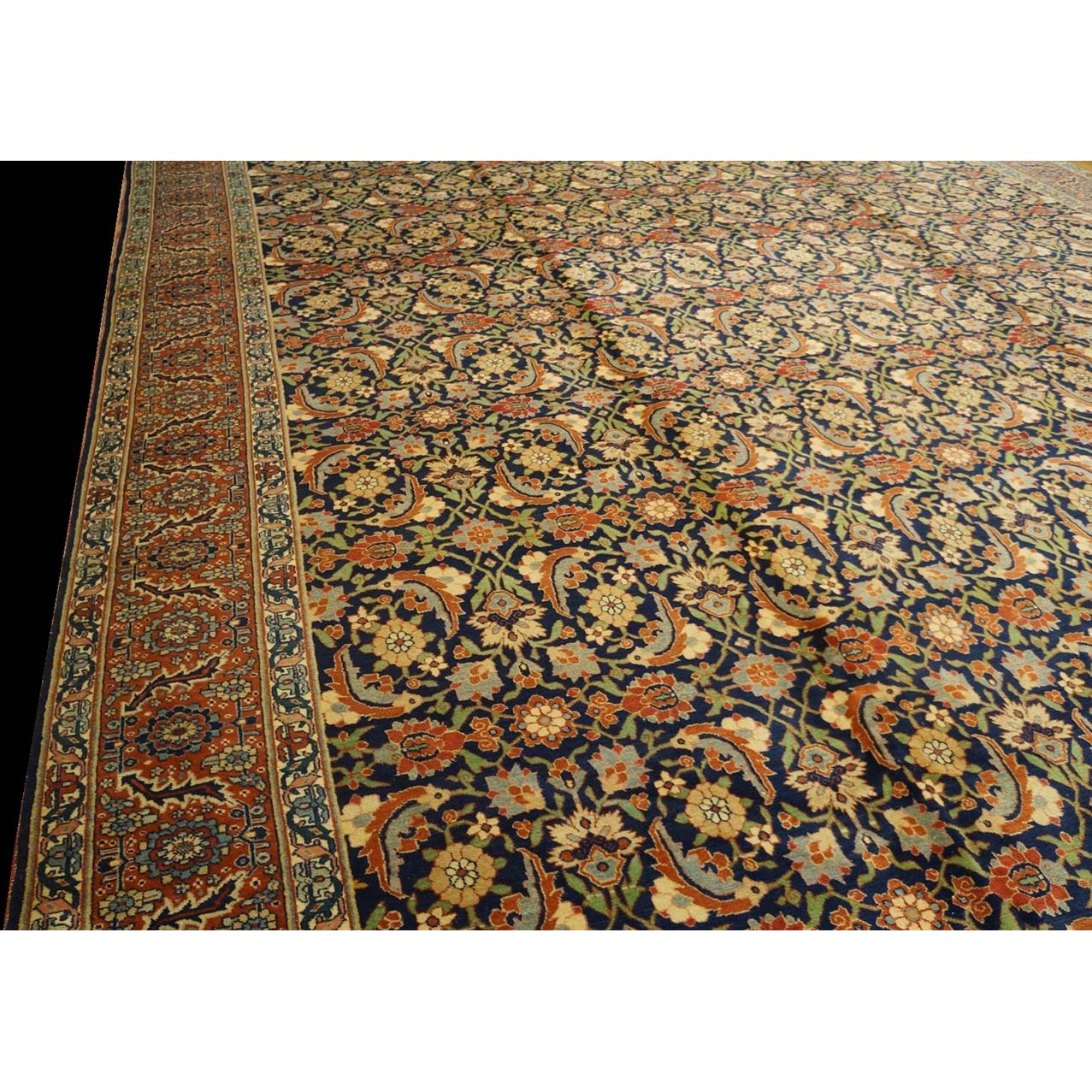DescriptionTabrizTabriz is the seat of Persian Azerbaijan Province, a large industrial and commercial city with a long history as a past national capital and as an artistic center. The weaving industry was revived there in the 19th century and is carried out in factories where rugs are closely supervised. Quality control is a feature of Tabriz pieces and various grades up to very fine, extremely large carpets may be had. When the colors have mellowed and condition is good, they are extremely valuable and popular with decorators every where. Medallion and overall patterns are woven equally successfully. Silk carpets were popular from this area before 1930 and a few are still made. Sizes range from 2 x 3 to ones 20 x 30. Prices are moderate for the lower grades and upwards. | |