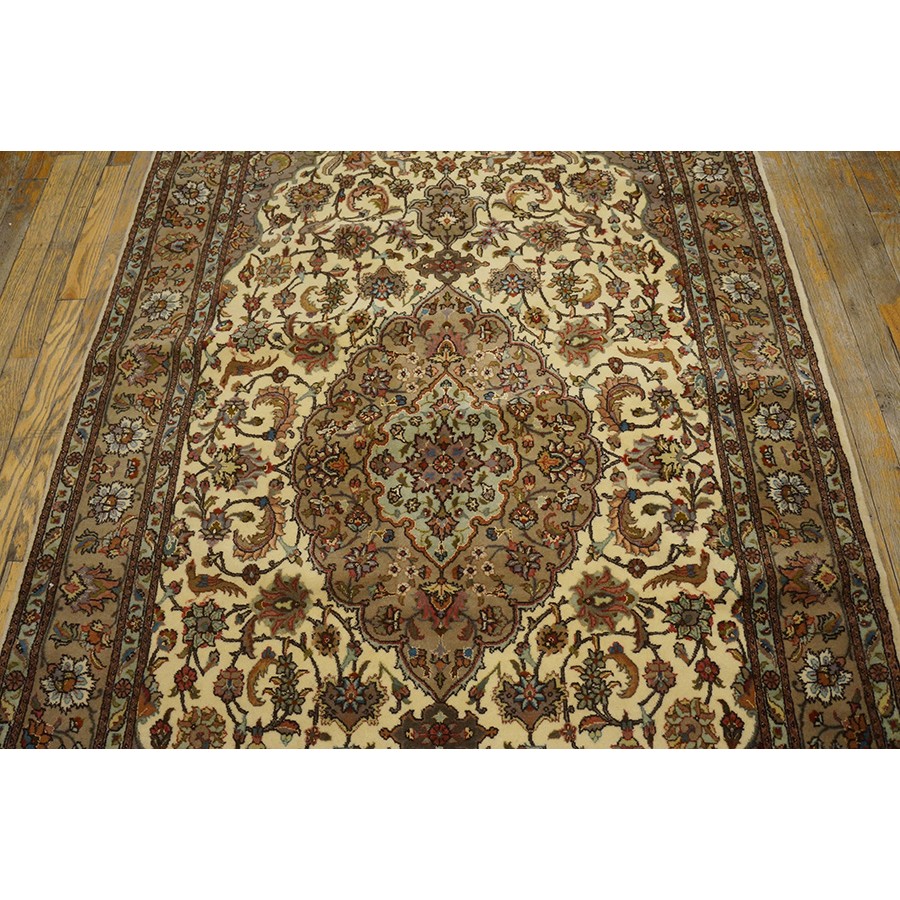 DescriptionTabrizTabriz is the seat of Persian Azerbaijan Province, a large industrial and commercial city with a long history as a past national capital and as an artistic center. The weaving industry was revived there in the 19th century and is carried out in factories where rugs are closely supervised. Quality control is a feature of Tabriz pieces and various grades up to very fine, extremely large carpets may be had. When the colors have mellowed and condition is good, they are extremely valuable and popular with decorators every where. Medallion and overall patterns are woven equally successfully. Silk carpets were popular from this area before 1930 and a few are still made. Sizes range from 2 x 3 to ones 20 x 30. Prices are moderate for the lower grades and upwards. | |